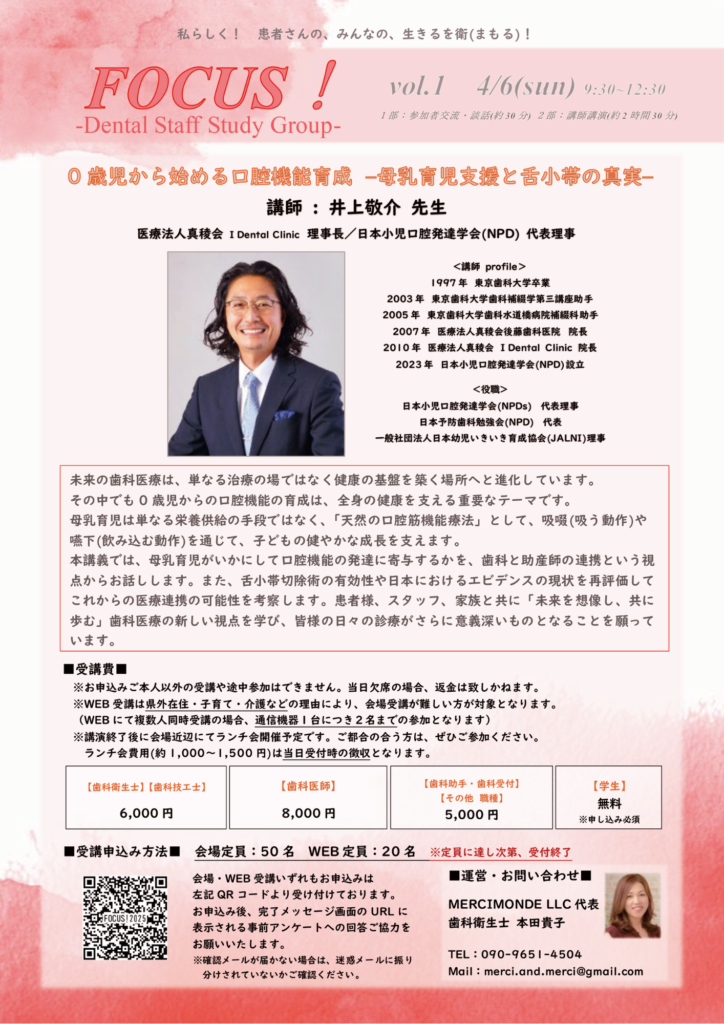 MERCIMONDE LLC 代表として臨床教育に携わりながら、インプラント治療や歯周治療、コミュニケーションの講師としても活動中。その本田さんが手がけるStudy Group “FOCUS!”