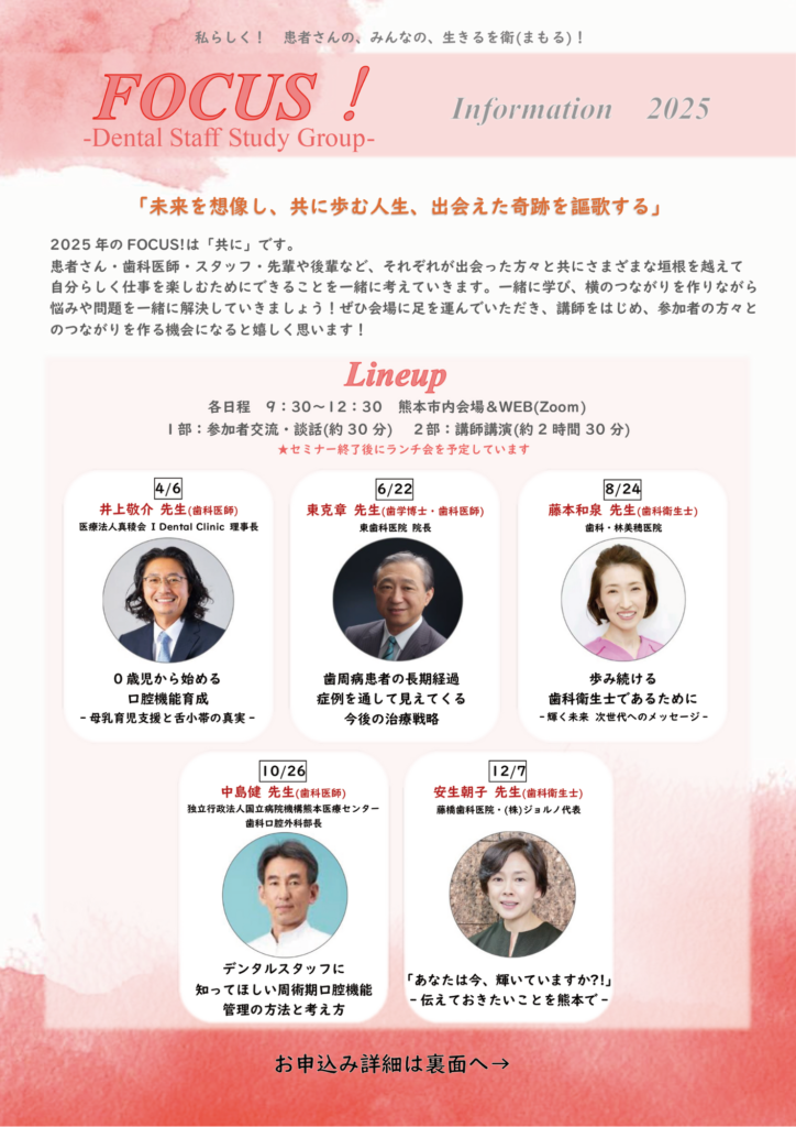 多くのデンタルスタッフと共に学びを深める2025年度の研修会のご案内をお知らせします。